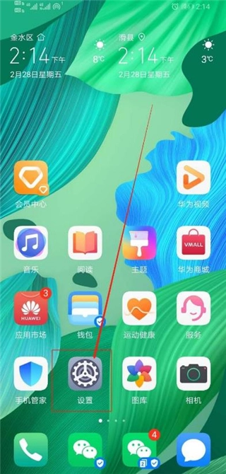 2. 解锁手机后,在手机界面上找到“设置”图标,参考图示。