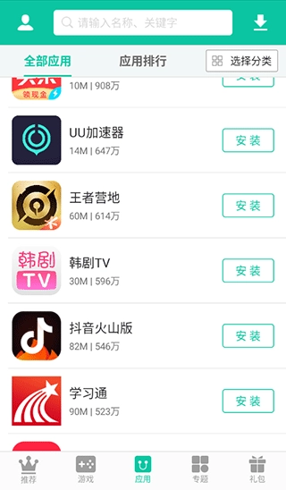 1、首先打开手机里的,在首页可以看到很多热门游戏的特殊以及bt版本可以直接安装,还有礼包可以领哦。
