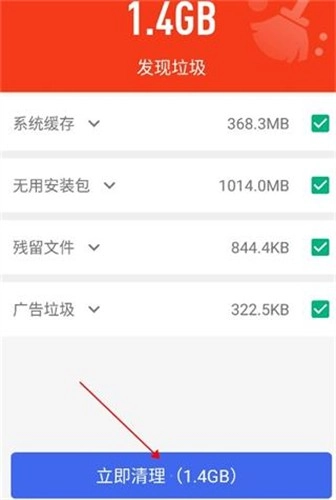 2、在首页点击“立即清理”按钮,开始查找手机垃圾。