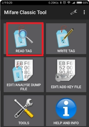 2. 将卡置于手机下方,保持类似刷卡的姿势,不要挪动。接着点击图中的“READTAG”按钮,即可进入下方界面。