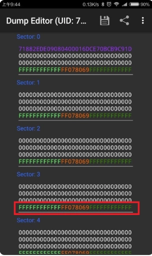 4、如以下图示,在读取的数据里,要是除了selector0的第一行之外,其他位置也存在数据,又或者直接显示NOKEYSFOUND,那么你们门禁被模拟的可能性相对较小;倘若selector0的第一行都无法读取出来,抑或是卡片不能被手机识别,这样的门禁卡便无法用手机进行模拟。
