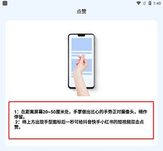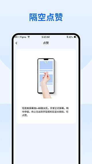 2、具备齐全功能,设置过程轻松简便,用户能够随时随地进行隔空手势设置。这款手机隔空手势设置软件,可让用户轻松自定义各类手势,达成隔空锁屏、接听电话、点赞以及滑动等操作。