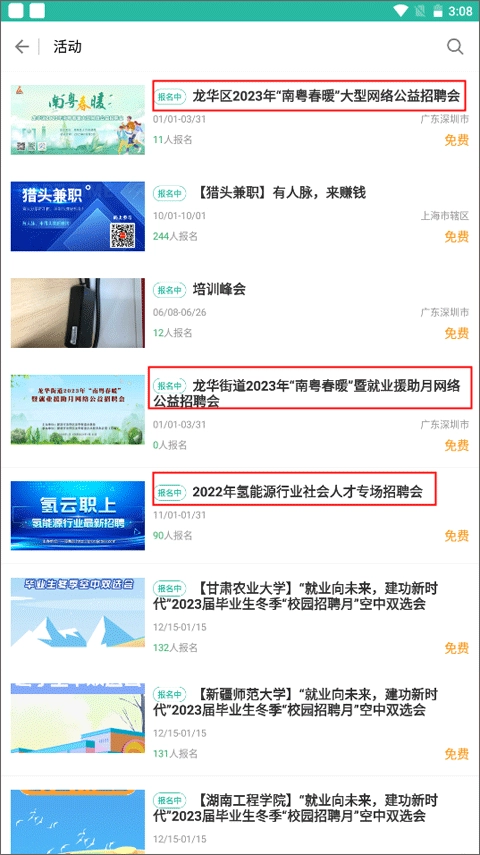 2、在这个界面上,你会看到诸多招聘会活动。若想找到理想工作,不妨在此寻觅适合自己的,挑选其中一个活动并点击进入。