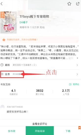 3、点击“目录”,即可查看小说目录详情。