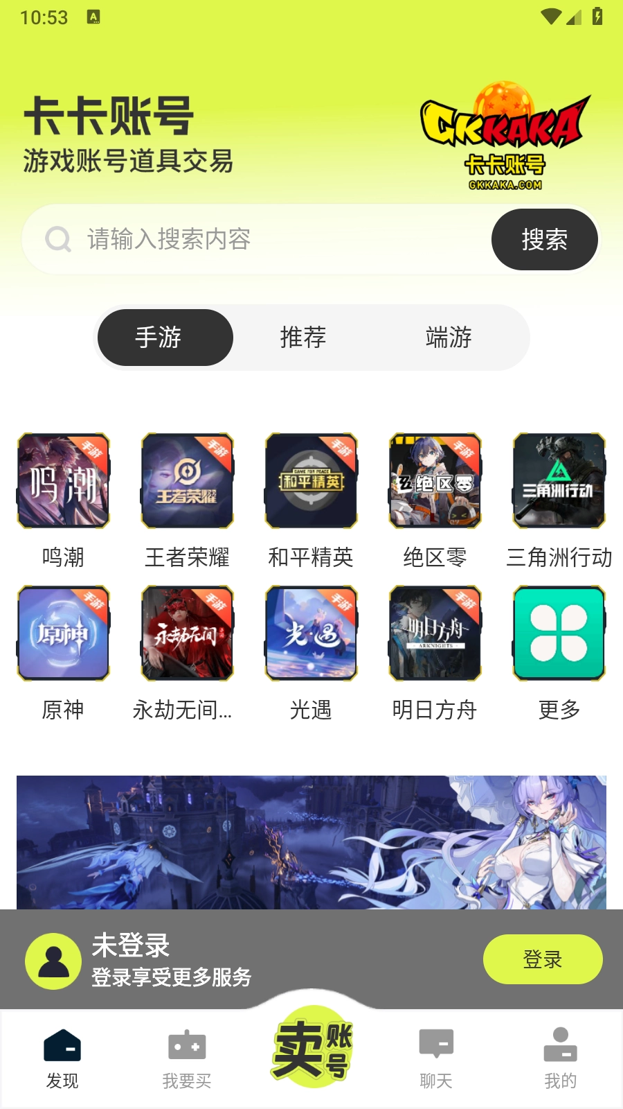 卡卡账号App,这是一款专门为游戏玩家精心打造的安全可靠的游戏账号交易平台。在这里,无论是热门端游账号,还是其他各类账号,统统支持在线交易。平台上各种热门游戏应有尽有,像诛仙世界、王者荣耀、原神、暗区突围、天涯明月刀等热门游戏一个不少。不管你是想要进行账号买卖,还是道具交易,操作都十分方便。而且,平台有第三方保障交易安全,为你提供便捷又安心的交易服务。心动不如行动,快来体验吧!