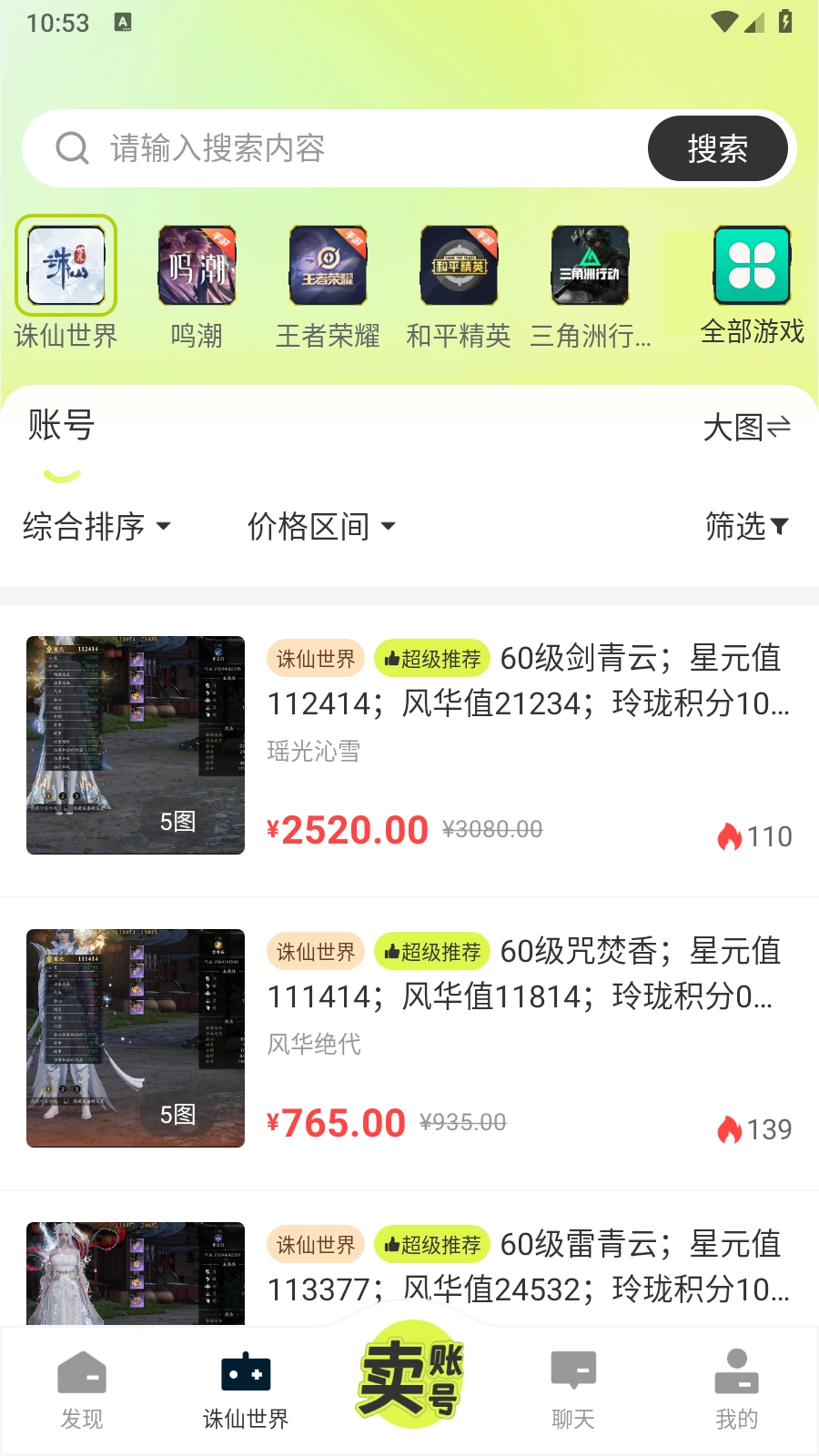 2. 这里拥有各类热门游戏账号,随时都能迅速找到买家完成交易。
