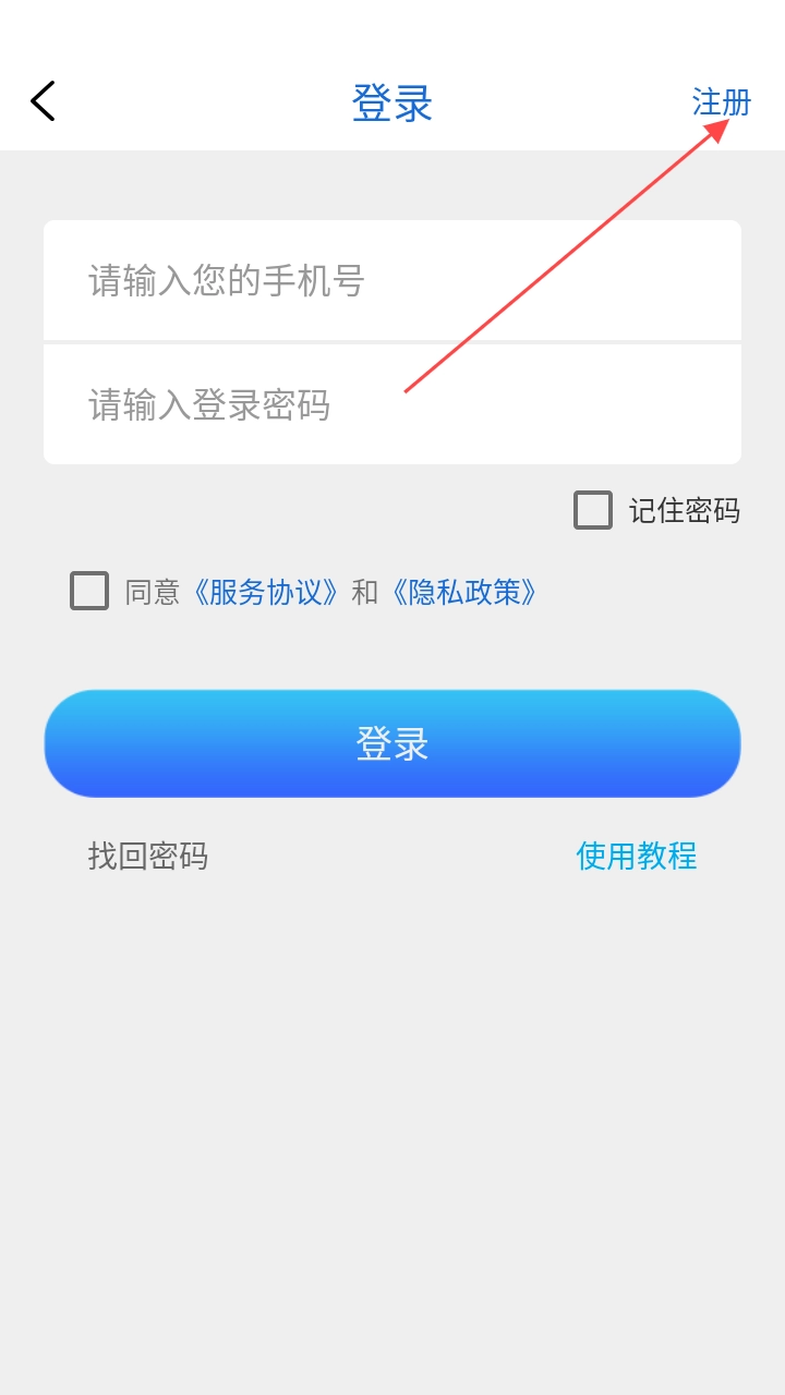 2、在登录页,点右上角【注册】,切换到注册界面。