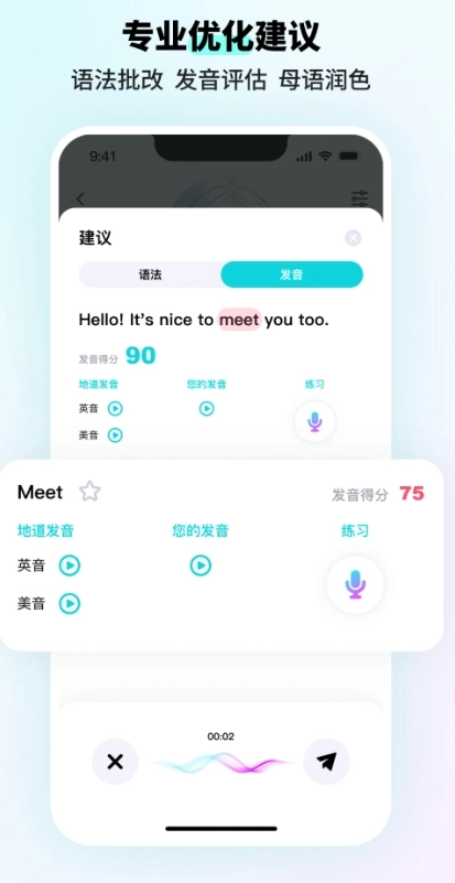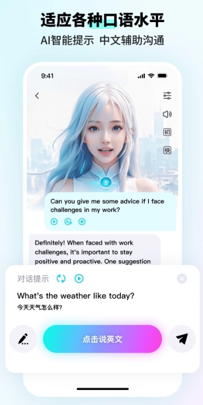 2. 能够使你在任何时间、任何地点与人工智能老师展开语音对话,以此锻炼你的英语口语。
