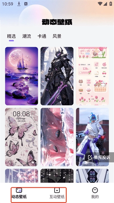 2、存在多种分类,且风格各异,涵盖动态壁组、精选、潮流、卡通、风景等。