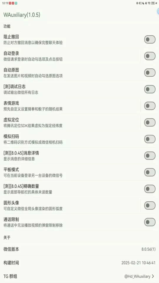 3、接下来,在WAuxiliary微信模块里,你能够开启所需功能。