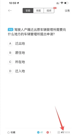1. 在驾考宝典的做题界面中,点击右下角的题目数量。