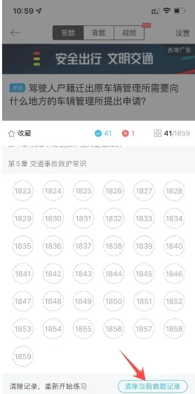 2、拉到题目最后面,点击清空当前做题记录选项。
