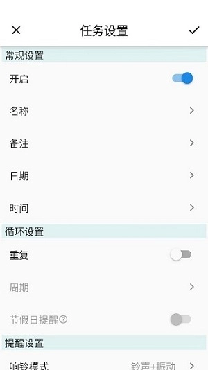 时光闹钟最新版是一个非常实用的提醒,不仅支持在每周工作、每月还款、每年生日等场合设置报警,还支持按时间周期和间隔设置报警,使用非常方便。