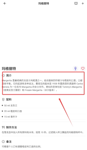 2、丰富的鸡尾酒配方库,从莫吉托到马天尼,每款酒的用料,做法和技巧都清晰标注。