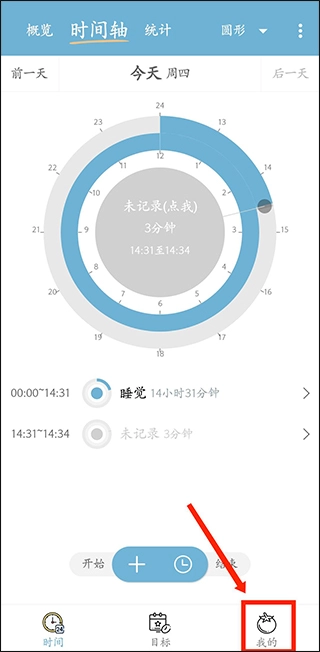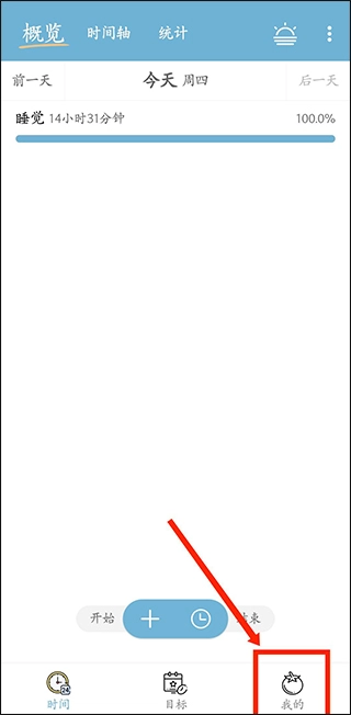 1、打开爱时间,在首页中找到【我的】,点击打开。