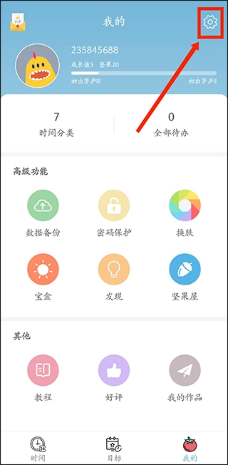 2、在【我的】页面右上角找到设置图标,点击打开。