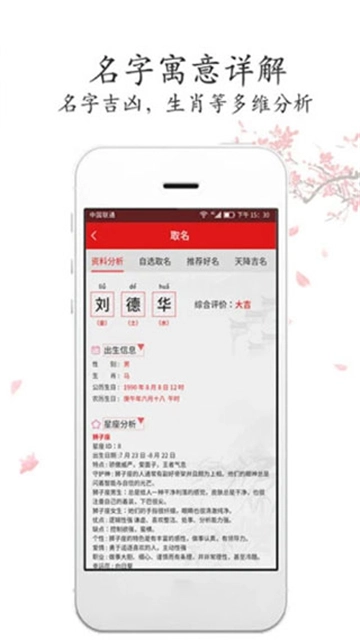 2.起名方法继承传统命理起名学优点,结合五行喜用,三才五格、生肖喜忌、字义音义,各个方位全面解读名字意义。
