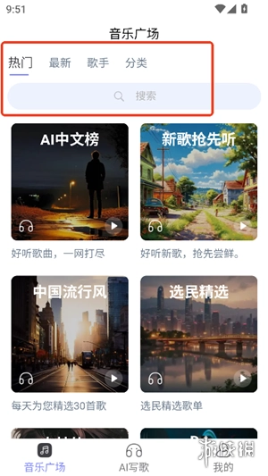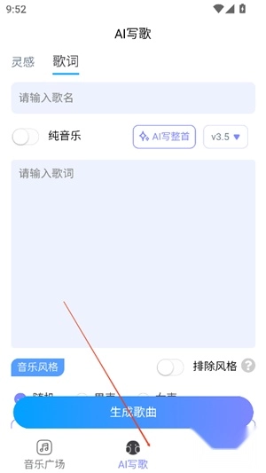 2、通过主界面"AI写歌"功能专区快速开启智能作曲。
