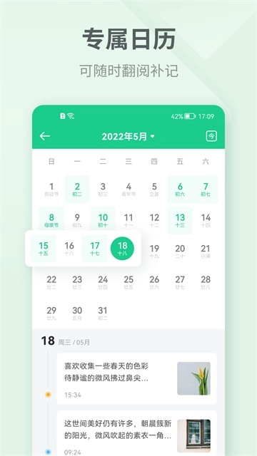 「日历」精准查看每一天的日记,不漏任何一天