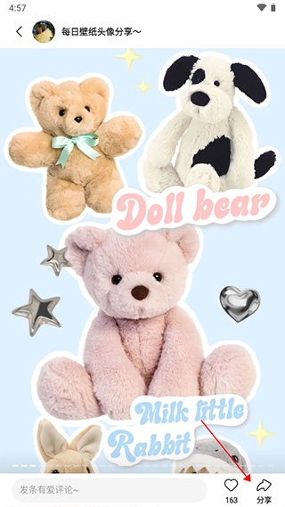 5、进入壁纸图片中点击任意位置后点击【分享】。