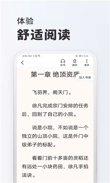软件中包含了海量的小说资源,用户可以自由,随时随地舒适阅读