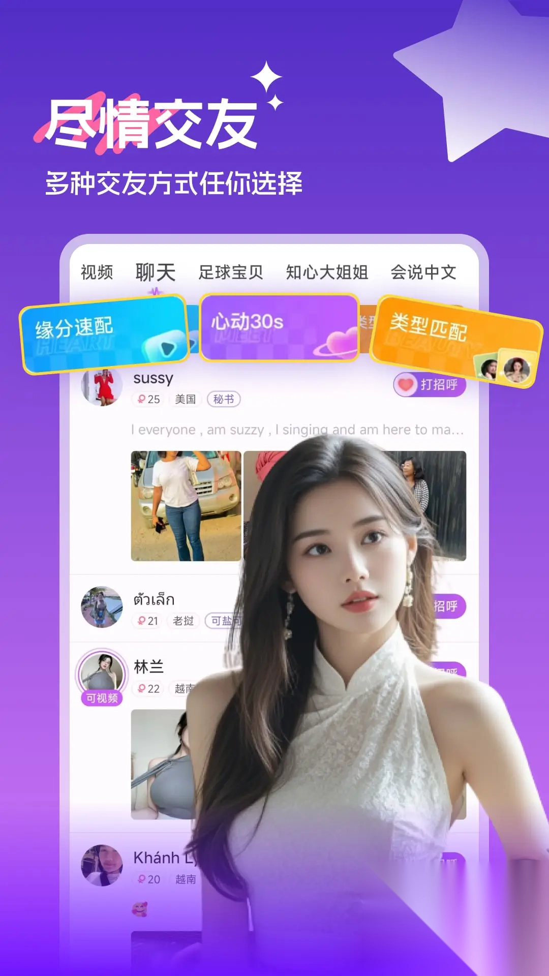 这款名为“越她”的社交应用,核心功能聚焦于语音与视频聊天,为用户搭建了一个新颖的交友空间。在这个平台上,人们能够便捷地认识新伙伴,寻觅与自己有着相似兴趣和想法的人,开启一段与众不同的社交体验。