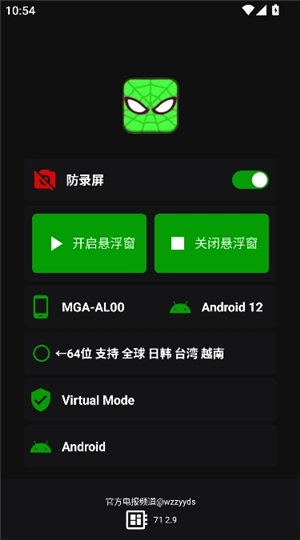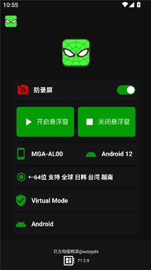 主界面不具备修改功能,需开启悬浮窗后才能使用相关功能,首先点击“防录屏”选项。
