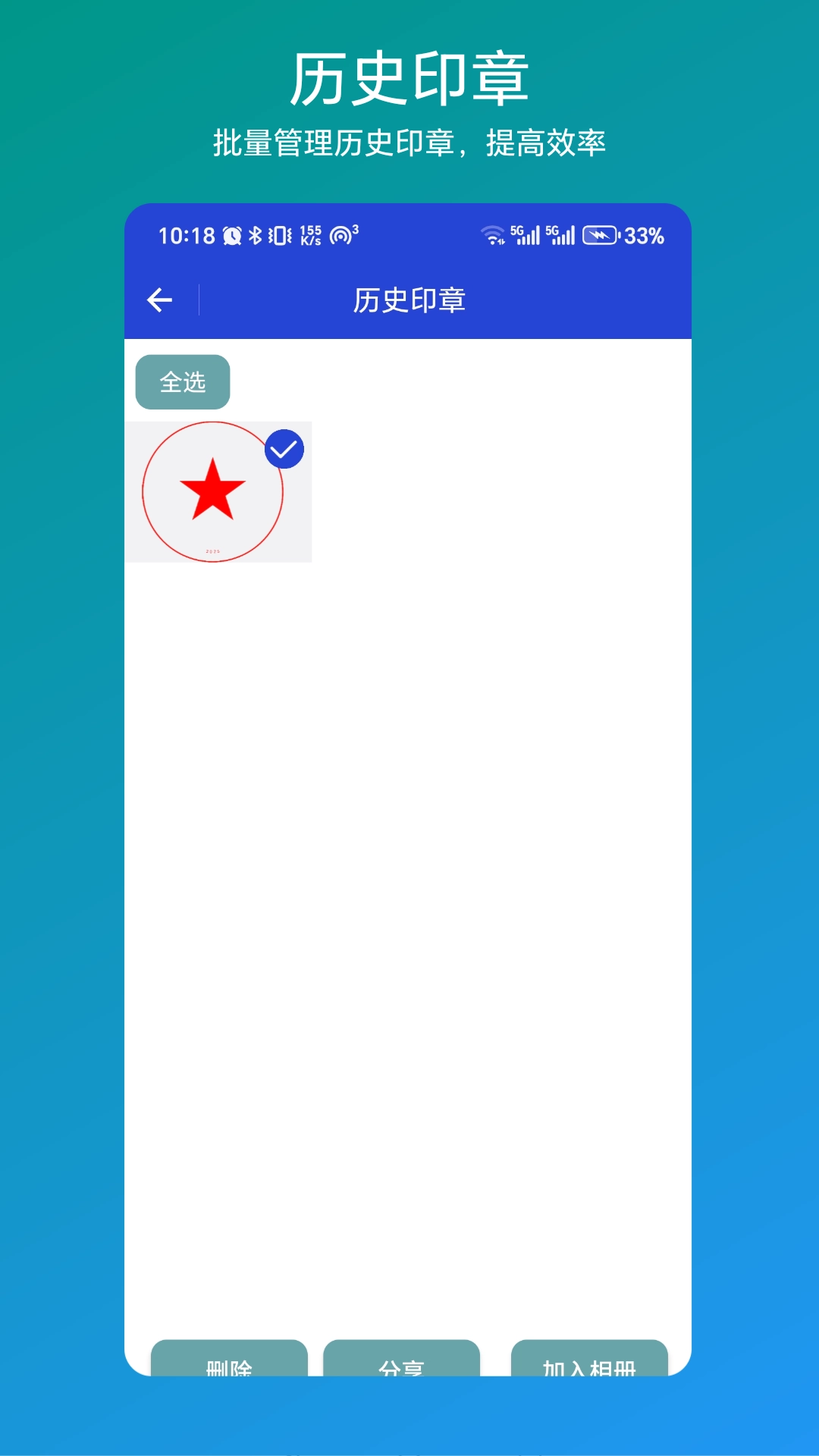 对于历史印章和历史编辑这类内容,系统采用批量处理的管理模式,以此简化用户在删除、分享等操作环节的流程。