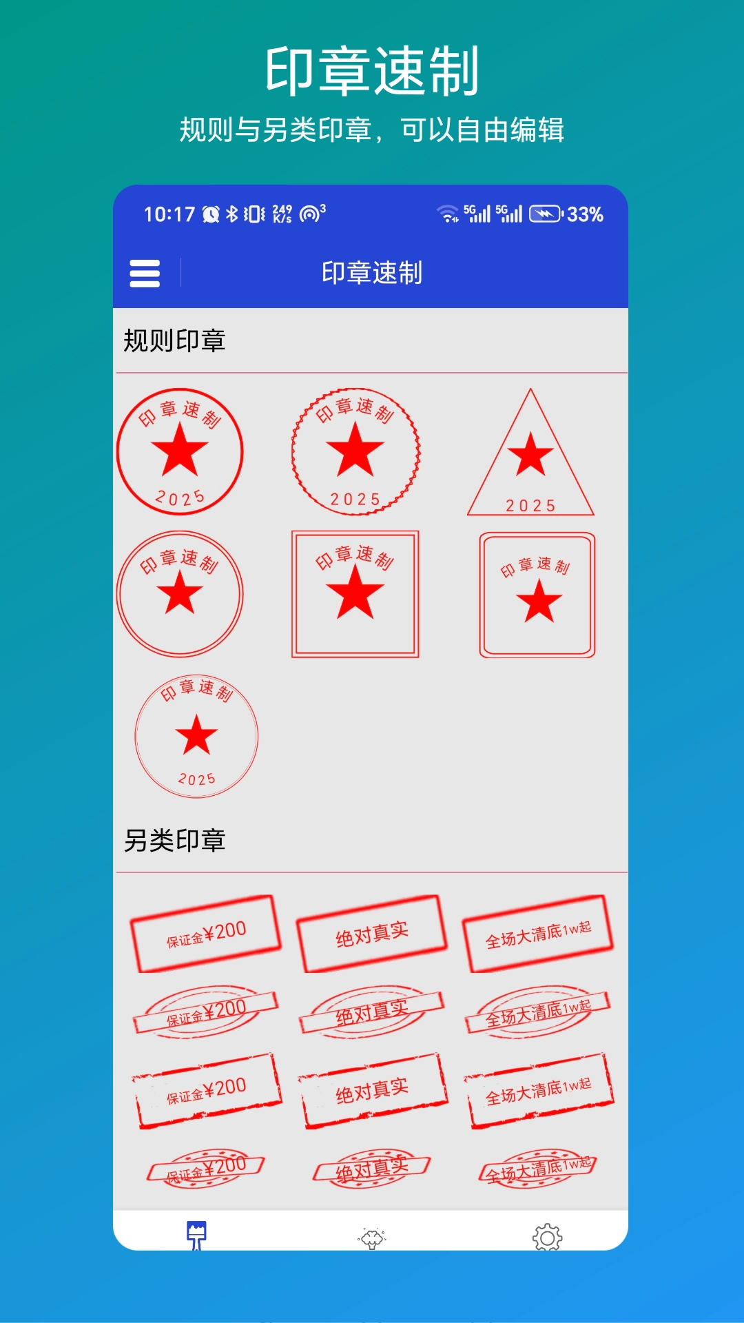 这款印章制作应用是一款实用的免费工具,能快速生成多种规格的印章样式,涵盖常规与特色类型,丰富的模板库可供按需挑选;智能抠图功能简化操作流程,制作记录会自动留存,用户可随时调用历史内容,满足各类使用需求。