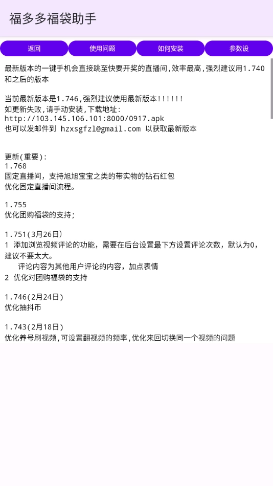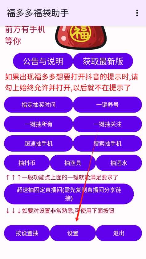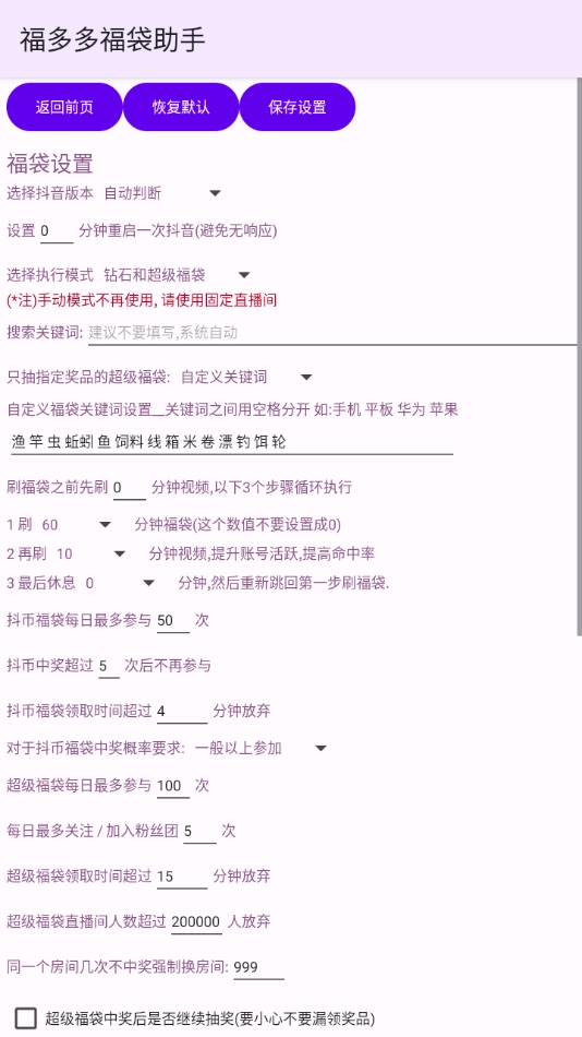 支持对抢福袋的相关参数设置进行调整,像刷新频率这类参数,以此来提升抢到福袋的成功率。