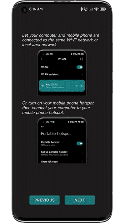 接下来请确保您的手机与电脑连接至同一无线网络,或者将电脑通过网线接入局域网内的路由器。