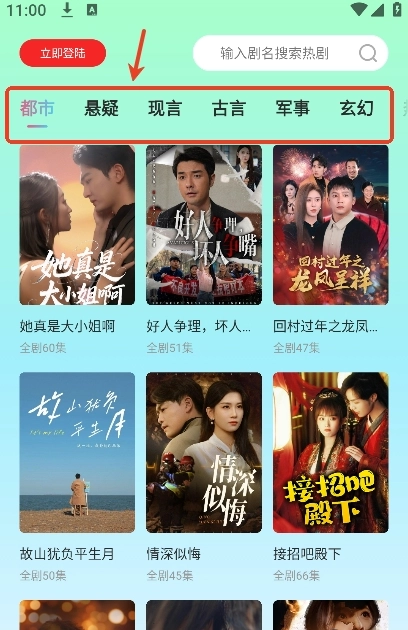 用户也可以根据短剧类型来筛选自己喜欢的短剧
