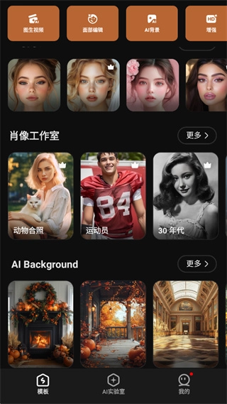 在本平台装入SelfyzAI修图应用后,启动即可解锁专业会员的全部功能。进入主页后挑选一个模板,接着导入用于创作的原始图片。