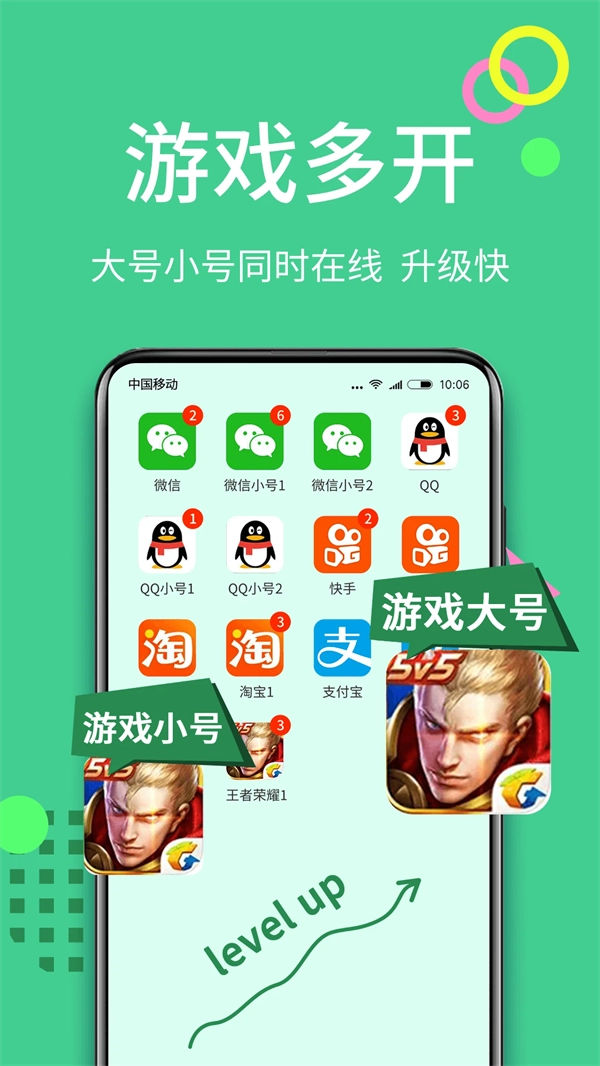 ●免费双开功能:可支持微信、QQ、淘宝、支付宝、抖音、王者荣耀等各类应用与游戏的微双开或微分身操作,小号分身拥有独立来源,能够单独运行,其使用体验与原版应用完全一致。