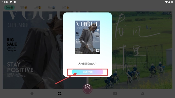 在模板页面中,定位到具有VOGUE杂志封面设计风格的模板,随后点击该模板以查看其具体信息。
