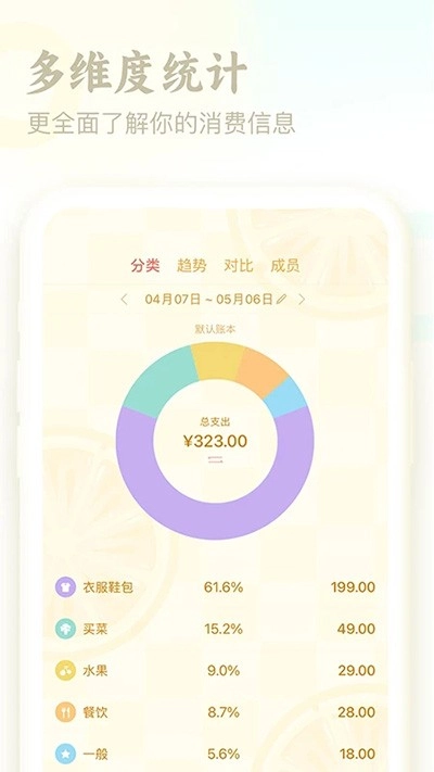 图表分析功能:可自动生成收支相关的图表与报表,助力用户更直观地掌握自身财务状况,进而发现消费习惯特点并总结出省钱技巧。