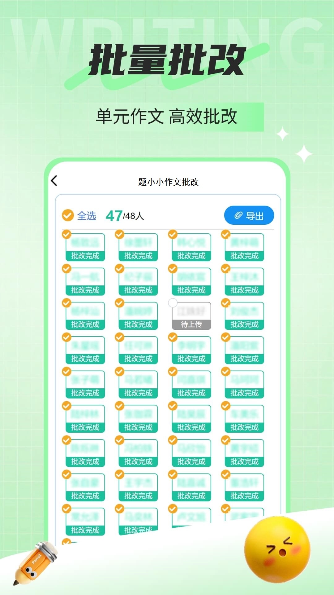 别再熬夜啦!AI可以精准批改各种类型的作文,不管是教材同步作文还是材料作文都能轻松搞定,还支持给全班甚至全校的作文进行批量处理,原本需要三天完成的工作量,现在一节课就能搞定,让您能把时间节省下来,投入到更有创意的教学工作中。