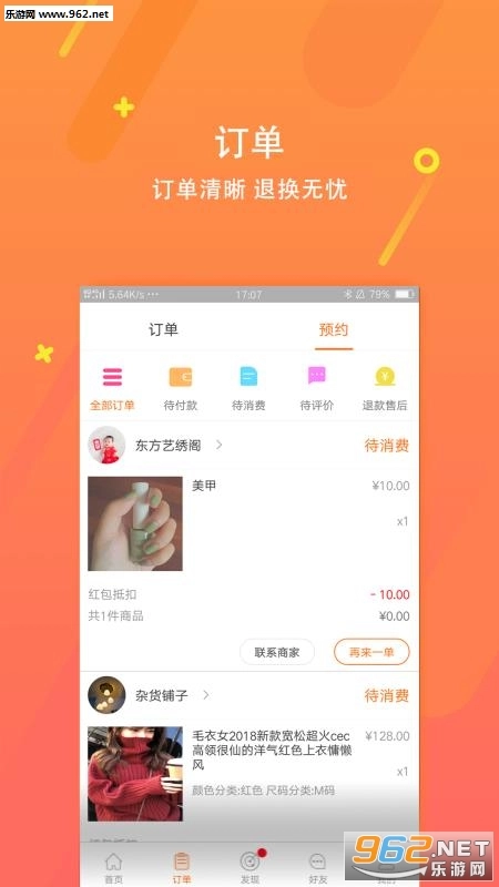 查看全部订单信息,就能看到所有待评价、待付款、待消费等类型的订单内容。