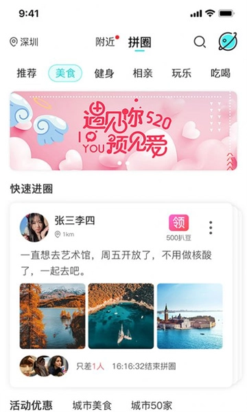 这里提供了事件日历功能,方便用户查看并参与其他用户创建和发起的社交及文化活动。