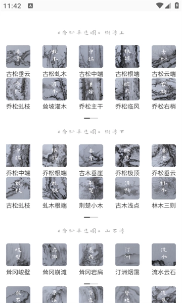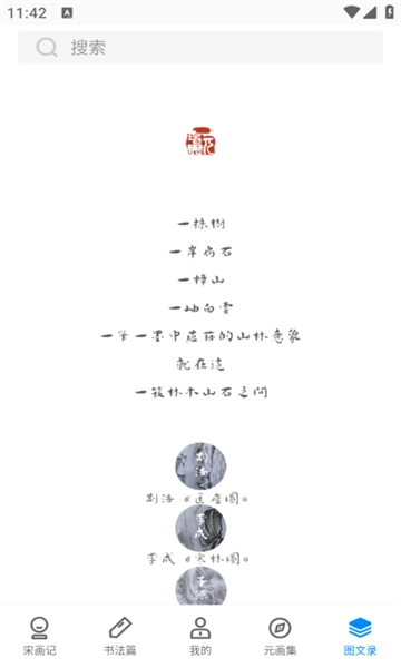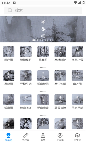 我们的应用宛如一幅鲜活的动态长卷,能让你在任何时刻、任何地点都沉浸于千年前的繁华盛景与细腻风韵之中。无论是宋画记、元画集,还是芥子园、书法篇、屏风里,每一个分类板块都展现着不同历史时期、各具特色的传统笔墨文化,希望借由笔下的线条与纸上的墨韵,带您领略那份与古人相通的绝美书画意境。