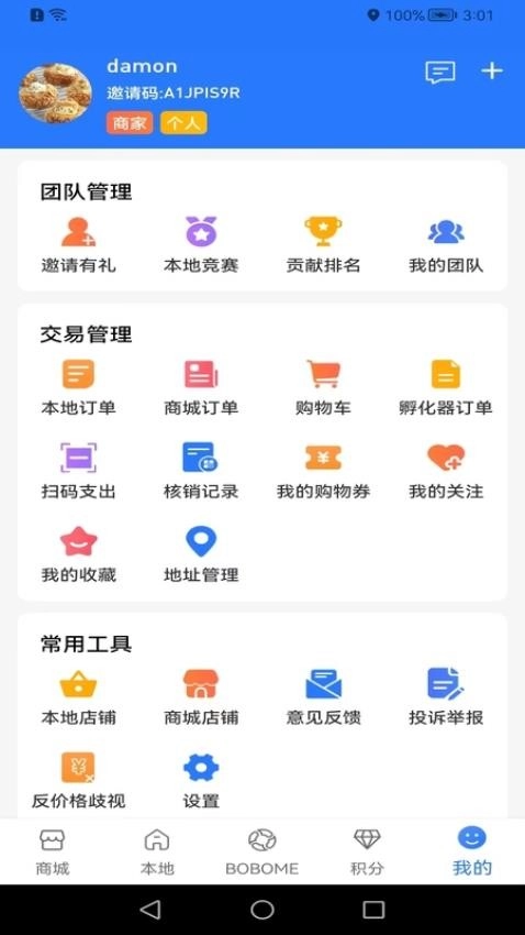 进入个人中心后,即可开展团队管理、交易管理以及店铺管理等相关工作。