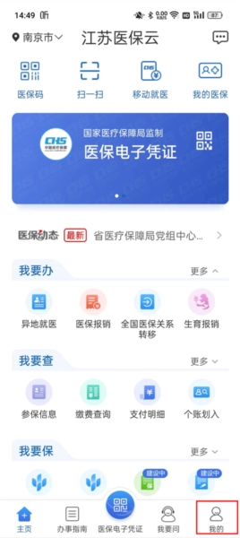 进入江苏医保云我的选择头像进入。
