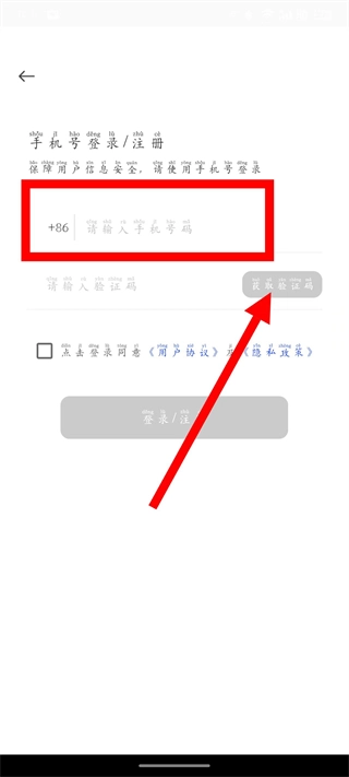 输入手机号,勾选协议后,点击获取验证码。