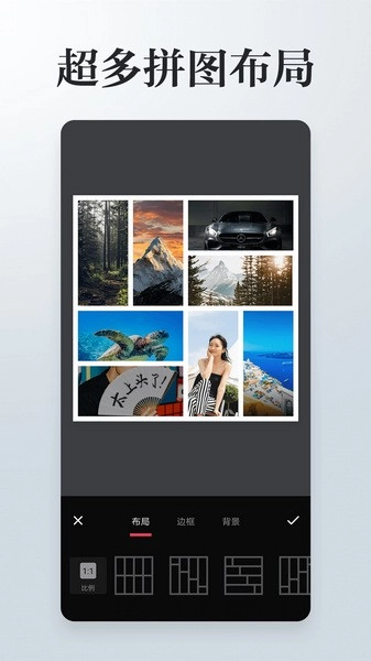 支持一键魔法抠图功能,具备智能羽化效果,助力您轻松制作美图、拼图与剪裁操作,简单实用;同时支持9张照片自由拼接组合。