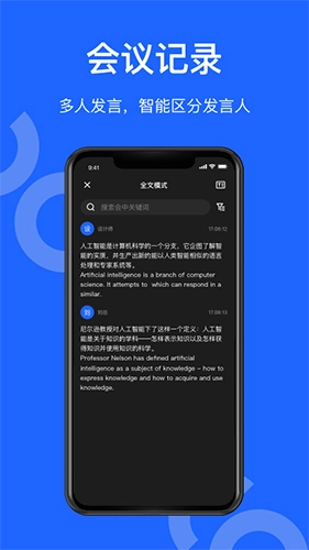 会议结束后系统会自动生成会议记录,支持通过二维码或链接进行分享;还能一键识别不同发言人,并支持按句子回听,帮助用户更高效地整理会议内容。