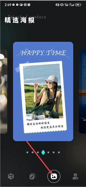 完成基础的图片编辑操作后,点击底部正中间的图标进入精选海报专区,挑选出喜欢的模板,就能把编辑好的图片添加进去,迅速制作出富有专业质感的海报成品。