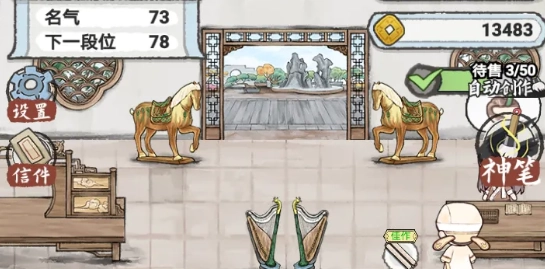 手动创作的玩法能让你亲身感受制作古画的过程,墨竹图、秋菊图、虾戏图、鸳鸯图、骏马图等数十种名画类别可供你选择创作,每次创作的成果可能会因你的技艺水平和当下状态有所不同。随着游戏进程的推进以及绘画技艺的提升,还能逐步解锁更多有趣的名画来绘制。要是你觉得手动创作比较麻烦,想把时间放在经营上,也可以使用自动创作功能。