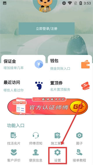打开匠小佐应用,找到功能入口区域后点击【设置】按钮,即可进入设置页面。