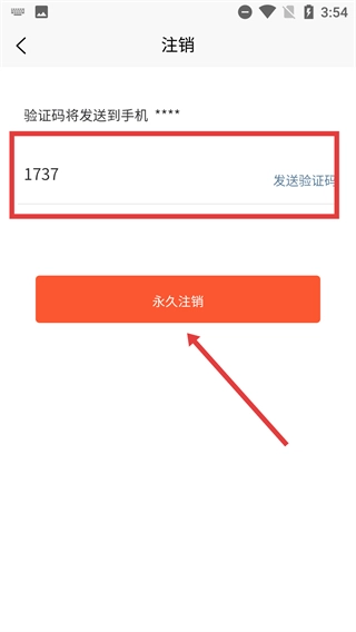 在验证页面输入收到的验证码,然后点击【永久注销】按钮,即可完成账号的永久注销流程。