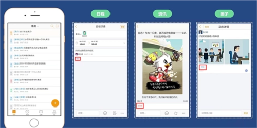 圈子:组织和好友的朋友圈,企业文化展示的平台。